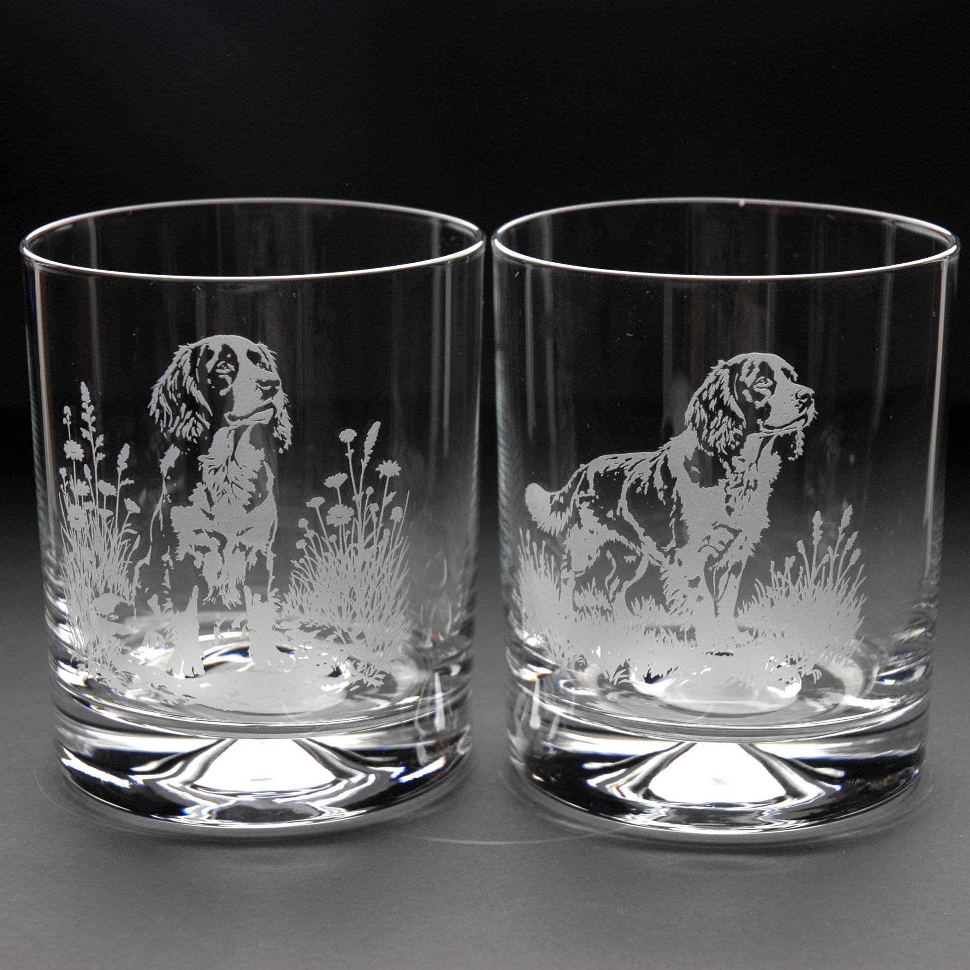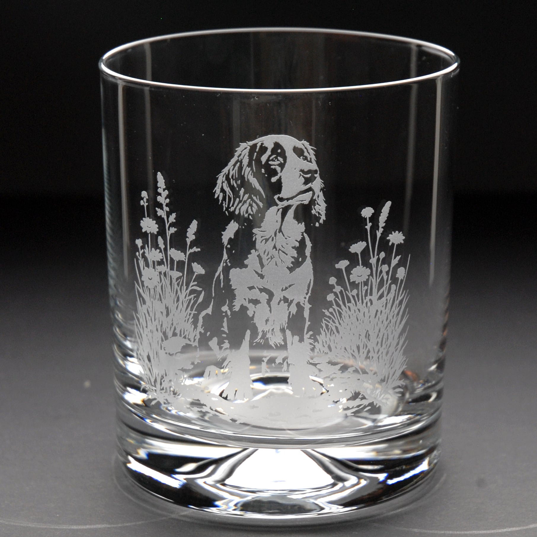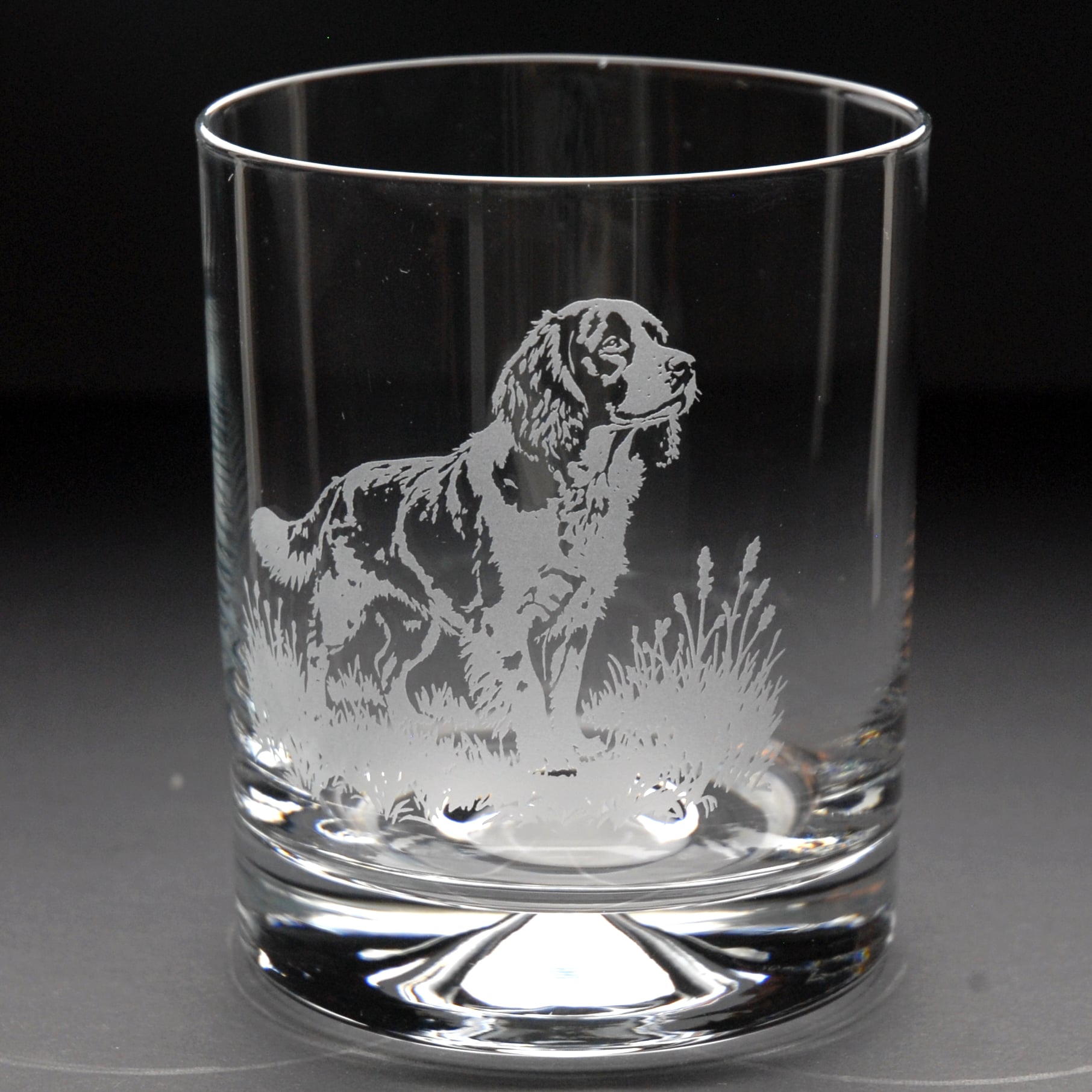 Bring a touch of dog charm to your home bar with this beautifully engraved springer spaniel dog whiskey tumbler glass springer spaniel dog whiskey tumbler glass. Each piece is carefully handāengraved in our familyārun Norfolk workshop, drawing on 40 years of traditional expertise for a permanent frosted design that will never fade.