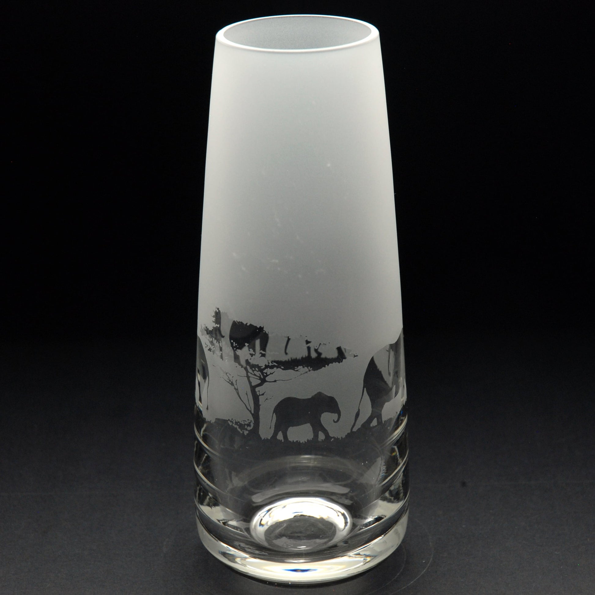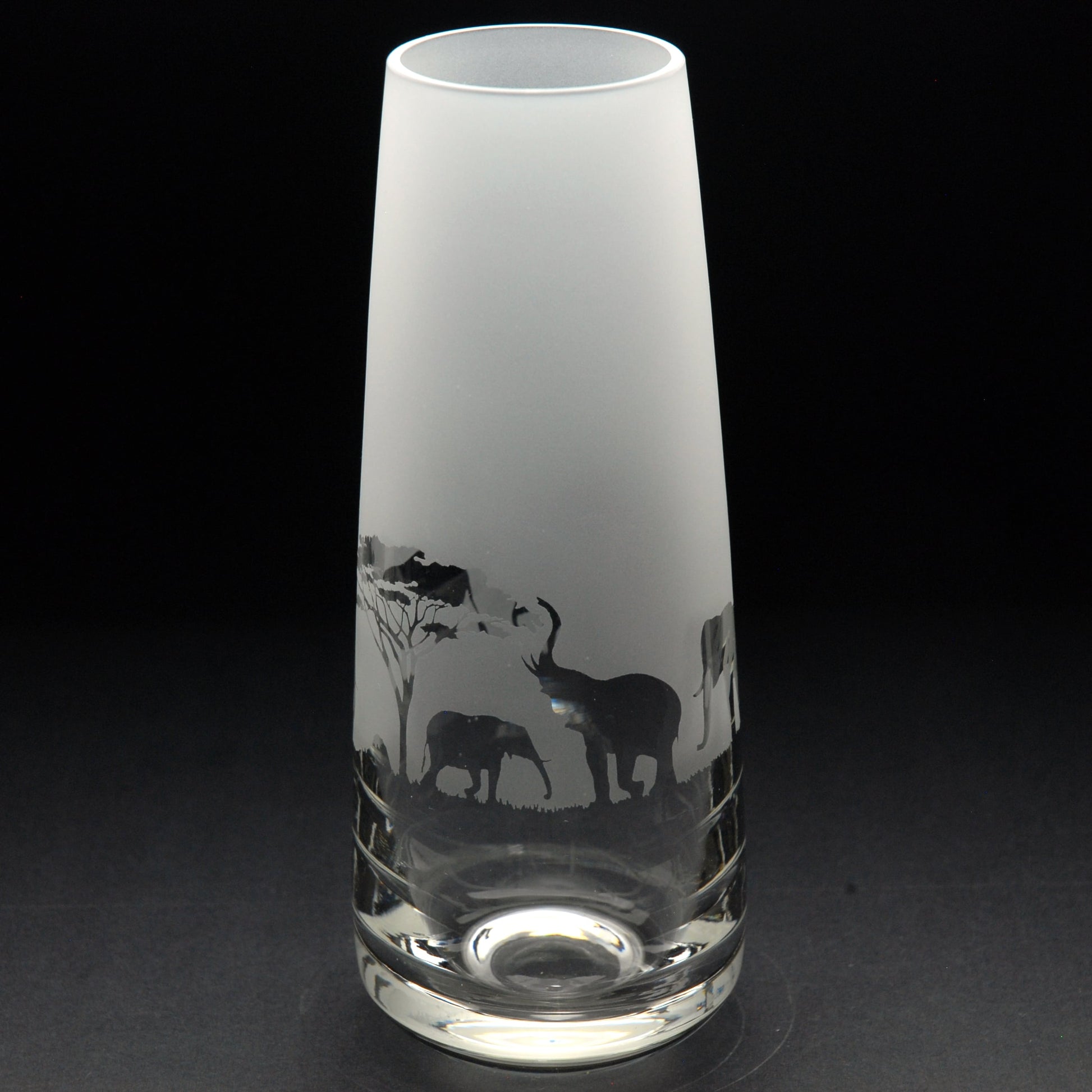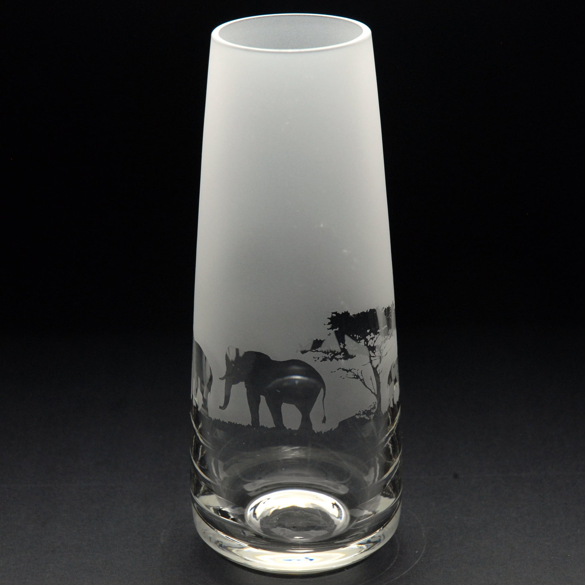 Bring a touch of safari charm to your home bar with this beautifully engraved elephant glass bud vase elephant glass. Each piece is carefully handāengraved in our familyārun Norfolk workshop, drawing on 40 years of traditional expertise for a permanent frosted design that will never fade.