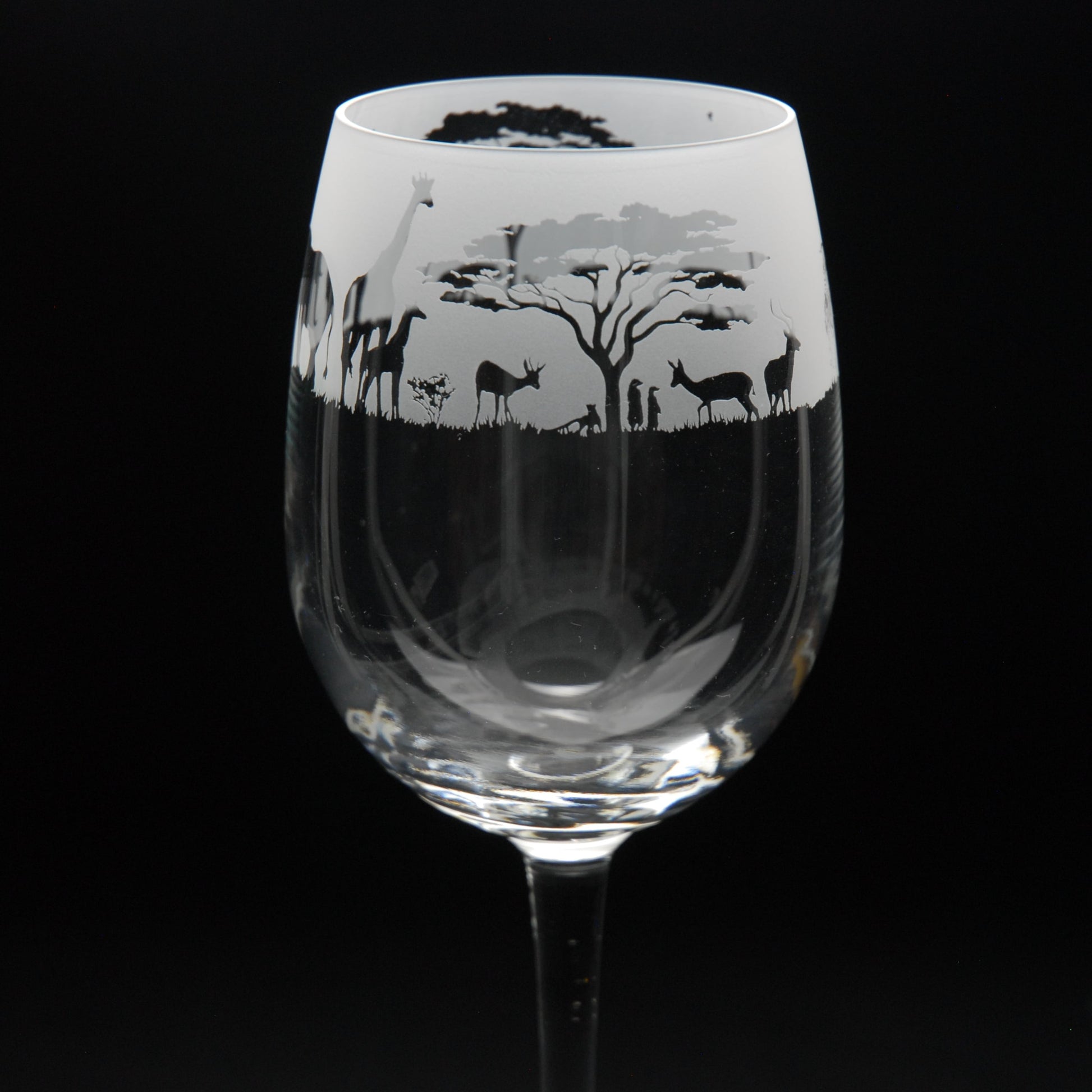 Safari Crystal Wine Glass - Hand Etched/Engraved Gift